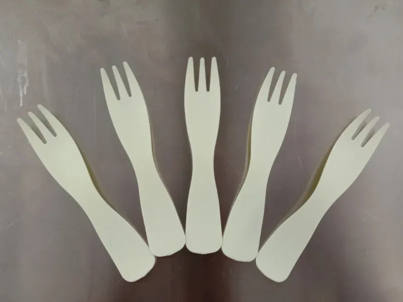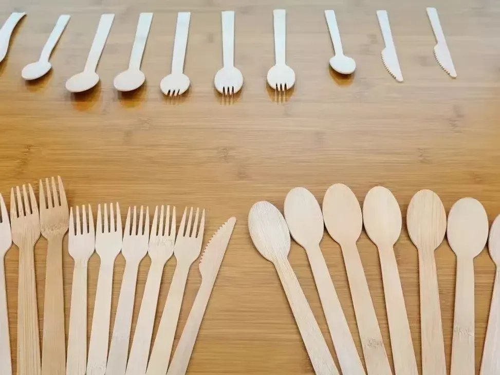 企业将“以竹代塑”技术融入到蛋糕餐托和塑料刀、叉的生产中。该竹塑刀叉以青皮竹粉占比25%-30%的竹塑粒为原材料,既满足食品级使用要求,又绿色环保,生产成本更优于传统全塑产品。