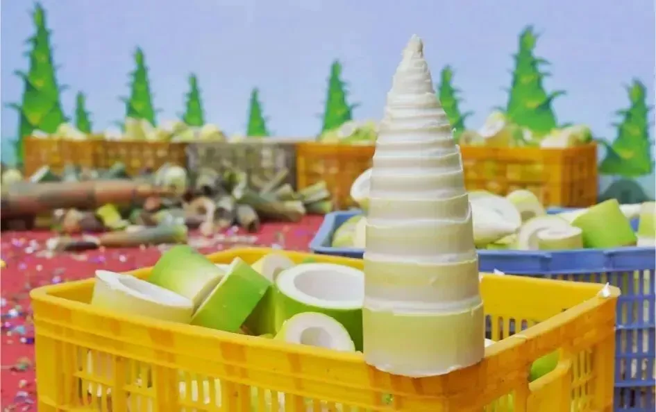 广宁麻竹笋是广宁竹乡的标志性广货农产品,笋体粗壮,略呈圆锥形,平均单笋重2.5kg。笋壳青绿中带着棕褐,笋肉乳白如玉,质地脆嫩,轻轻咬上一口,清甜的滋味在口中散开,爽脆的口感让人回味无穷。